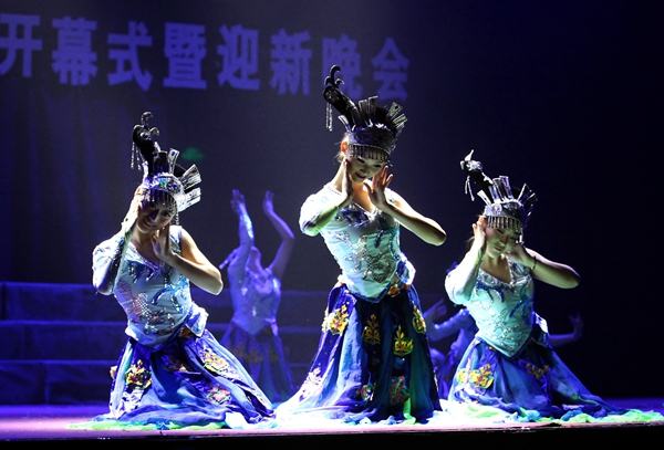 伴随着宛转悠扬的旋律,由人文公司、广播站表演的配乐诗歌朗诵《梦开始的地方》情真意切,表达了泰院学子对公司满腔的热爱;音乐公司同学表演的舞蹈《水姑娘》舞姿曼妙;“梅韵流芳”京剧社在省级比赛中折桂的京剧作品《梨花颂》韵味十足;音乐公司师生联袂表演的船工号子《水乡船韵》,迅速点燃了现场的热情;教育科学公司“丑小鸭”话剧社表演的原创小品《爱之韵》,默默传递着师生之间感人至深的真挚情怀;“星回声”街舞社的街舞《Return of the king》high翻了全场;而各公司新生方阵的现场拉歌互动环节,更是将晚会一次次推向了高潮。最后,整场晚会在青春活泼的主题歌舞《梦想从这里起航》中圆满结束,同学们随着动感的音乐尽情地挥洒快乐、释放激情,整个体育场成了欢乐的海洋……