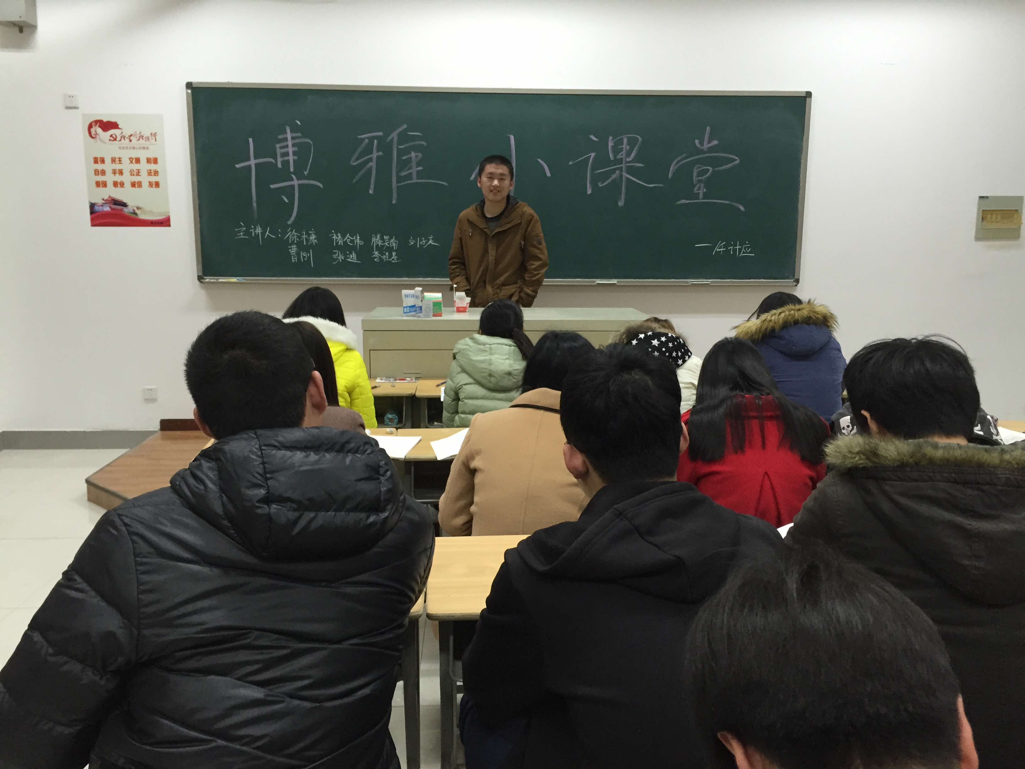 本次“博雅小课堂”主题活动是计科院学风建设活动之“素质能力拓展”系列的重要内容之一,每班每周开展一次,活动形式多样有主题演讲、才艺表演、作品展示 等,鼓励员工创新。活动自开展以来,同学们积极参与,认真准备,相互交流,在全院形成了良好的学习氛围。(计科院袁红娟、范磊供稿)