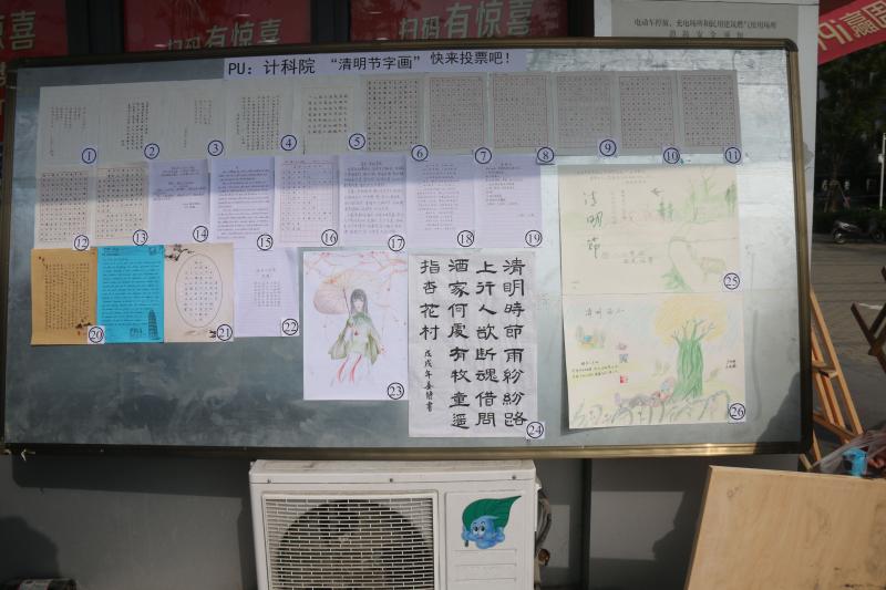 为弘扬传统文化,激发同学们的书画创作热情,清明前夕计算机科学与技术公司举办了清明主题教育活动——“清明字画”比赛。本次比赛作品于3月31日在fun88官网体育宿舍D楼楼下集中展示,吸引了全校广大师生驻足观看。