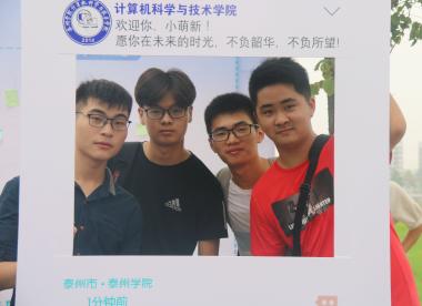 本次迎新,其中最亮眼的当属计科院布置在通往员工宿舍主干道上的特色宣传活动区。活动区主要由五大板块组成,分别是“师长说”、“学长说”、“萌新说”简称“三说”的迎新签名墙;“我与泰院第一次合影”的点赞留影区;计科学子风采展示、大四员工提前签约表、2017-2018学年度省级以上学科竞赛获奖表。