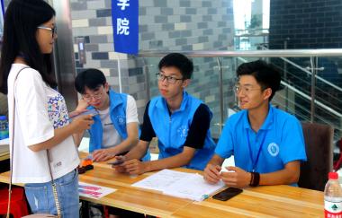 此次迎新工作,公司领导高度重视、提前部署、充分准备,在校园内到处可见红色的欢迎条幅,人性化的道路指示标志,身着天蓝色志愿服装的百余名志愿者全身心的投入,确保了迎新工作的顺利进行。