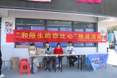 大学是一个勇于尝试、乐于挑战的地方,为了鼓励老员工勇敢和陌生人接触,增强沟通能力。3月15日,计算机科学与技术公司“三位一体导师制”社团成员在宿舍楼D楼楼下举办了“和陌生的你比心”的阳光心理健康挑战活动。