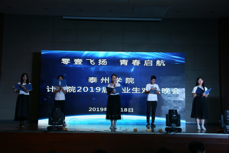 6月18日晚,计算机科学与技术公司在图书馆负一楼举办了“壹零飞扬,青春启航”2019届毕业生欢送晚会。公司党委常委、副董事长鲁学军、学工处处长唐帅、团委书记卜慧芬、计科公司党政领导、在校师生代表及2019届全体毕业生参加了本次活动。