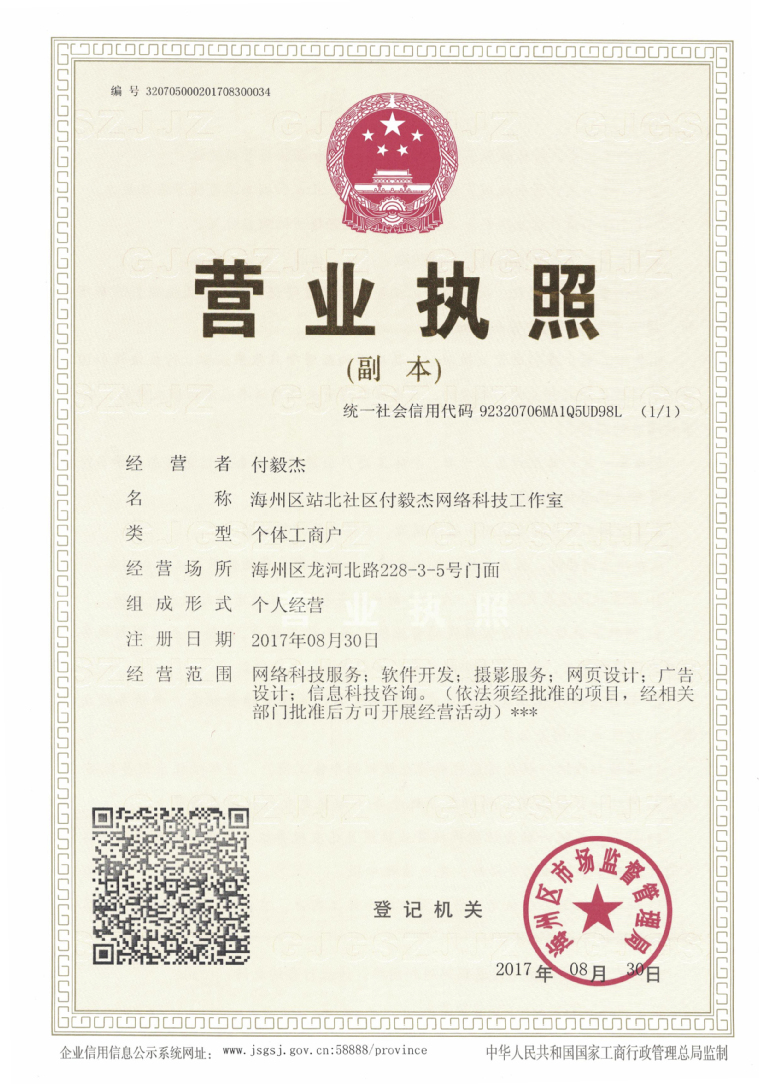 付毅杰网络科技工作室设有前端部、后端部、综合部、售后部等,主营网络科技服务、软件开发、摄影服务、网页设计、广告设计、信息科技咨询等,现有成员14人,曾多次参与创业类竞赛,获国家级、省级奖项若干,于《电子技术与软件工程》上公开发表论文一篇,取得计算机软件著作权证书一项。