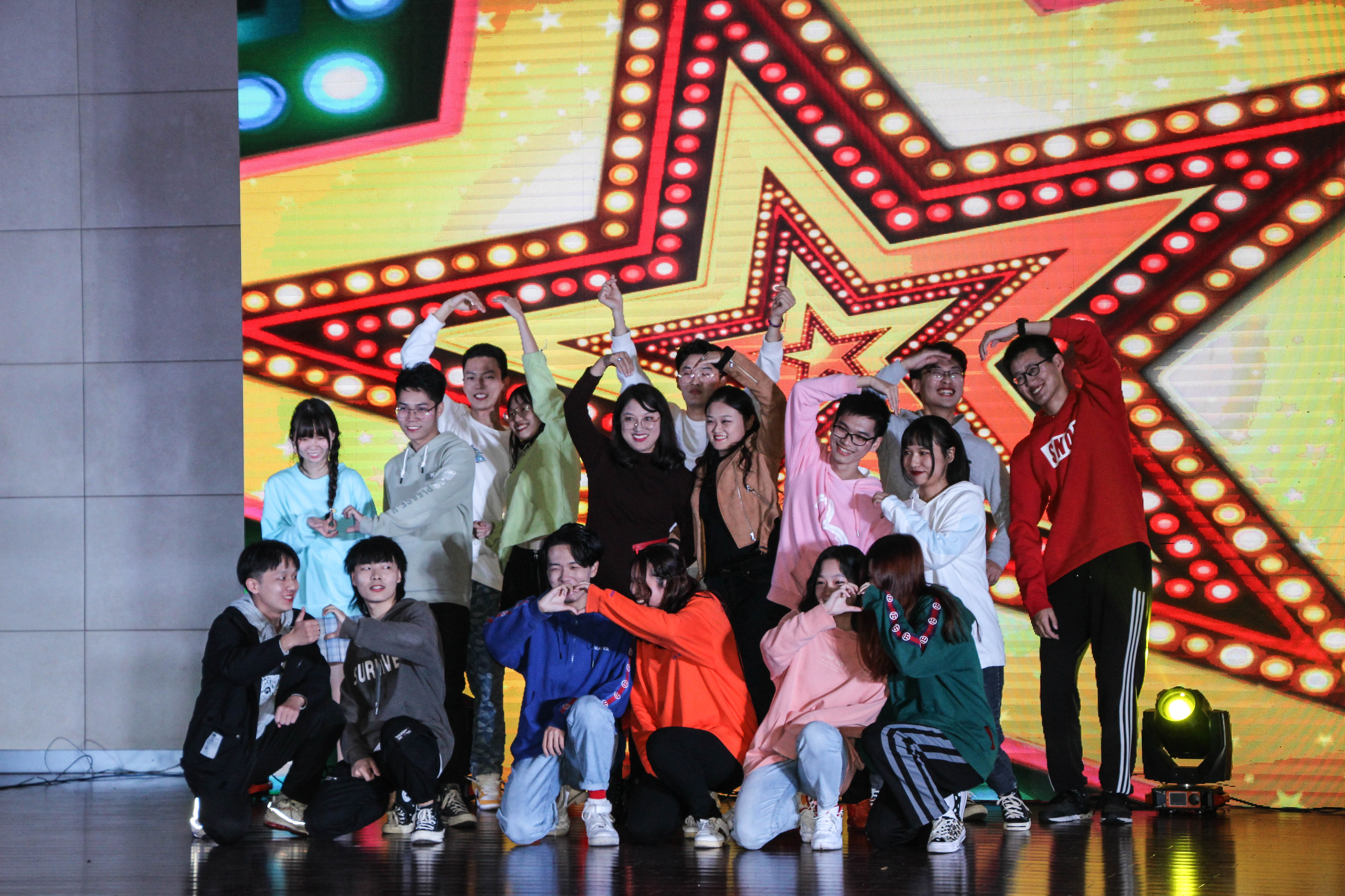 活动伊始,星回声街舞社动感的舞蹈拉开了晚会的序幕。各年级同学均带来了精彩表演:充满儿童回忆的表演《稻香》、感受民族之美的古筝舞蹈《赤伶》生动有趣的相声表演《儿童玩伴》、深情款款的歌曲《她的睫毛》、《此生不换》、幽默爆笑的小品《功夫》、即兴脱口秀、慷慨激昂的朗诵《中华少年》、集体舞《改革春风吹满地》以及辅导员老师与员工的共舞《good time》,现场欢呼不断,掌声此起彼伏。