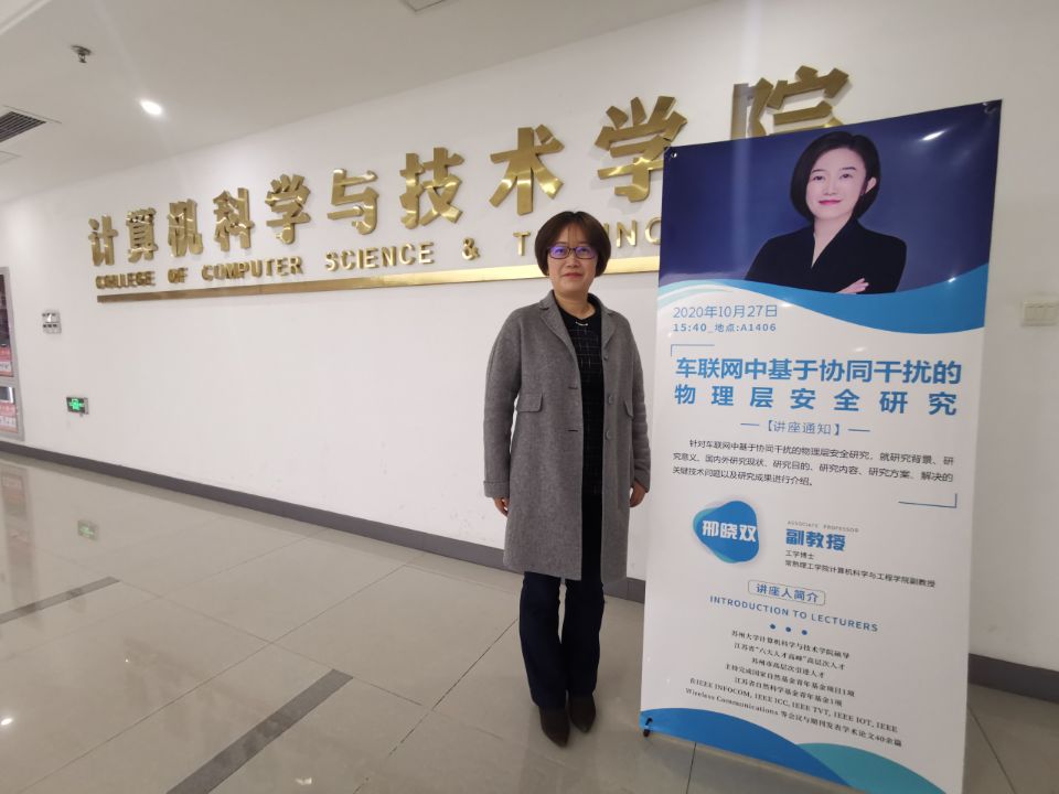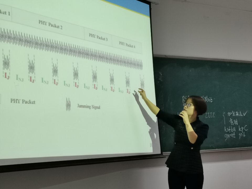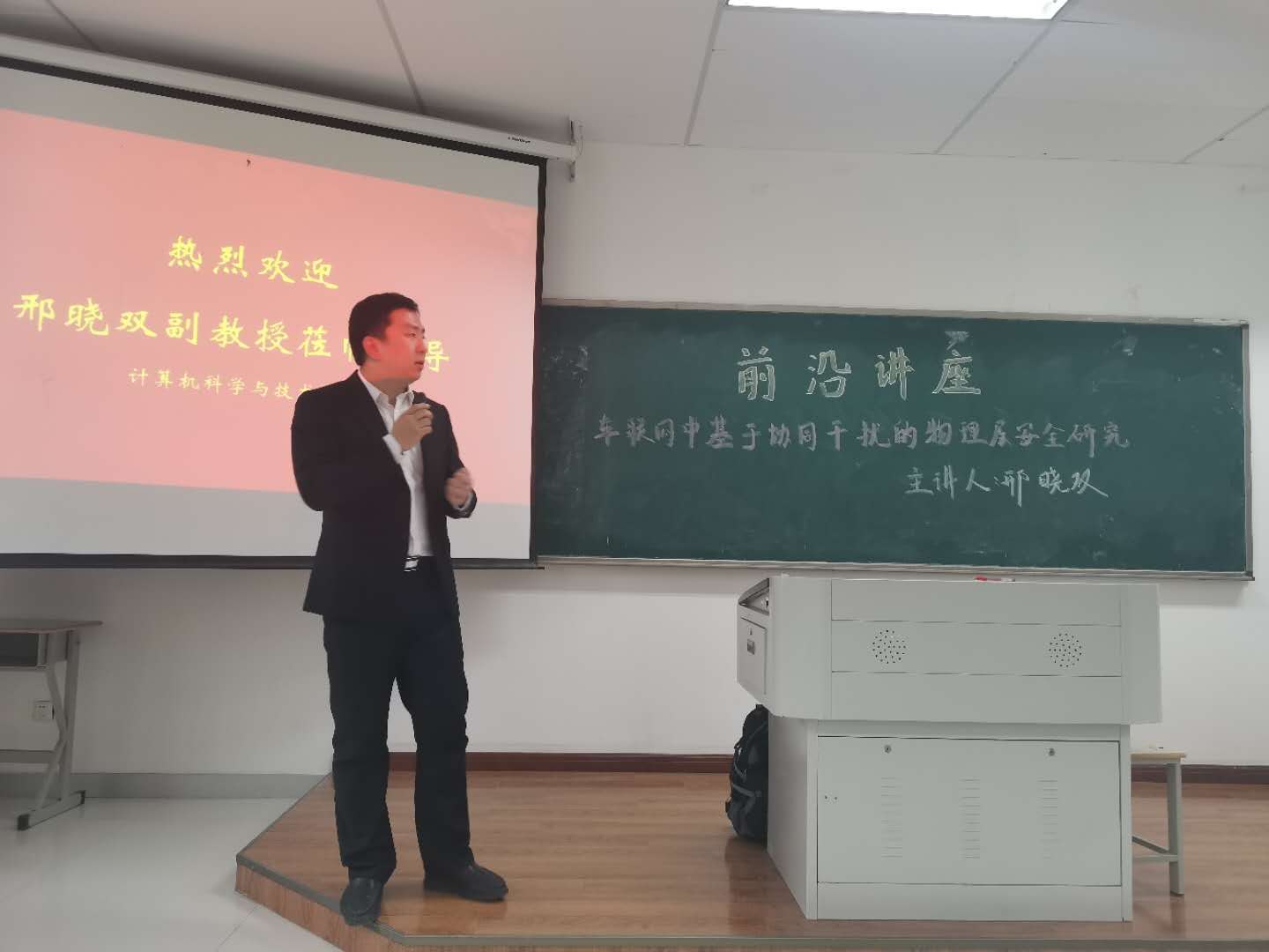 2020年10月27日,公司诚邀邢晓双副教授于教学楼A1406进行了题为“车联网中基于协同干扰的物理层安全研究“的前沿讲座,讲座由公司钱进副经理主持。