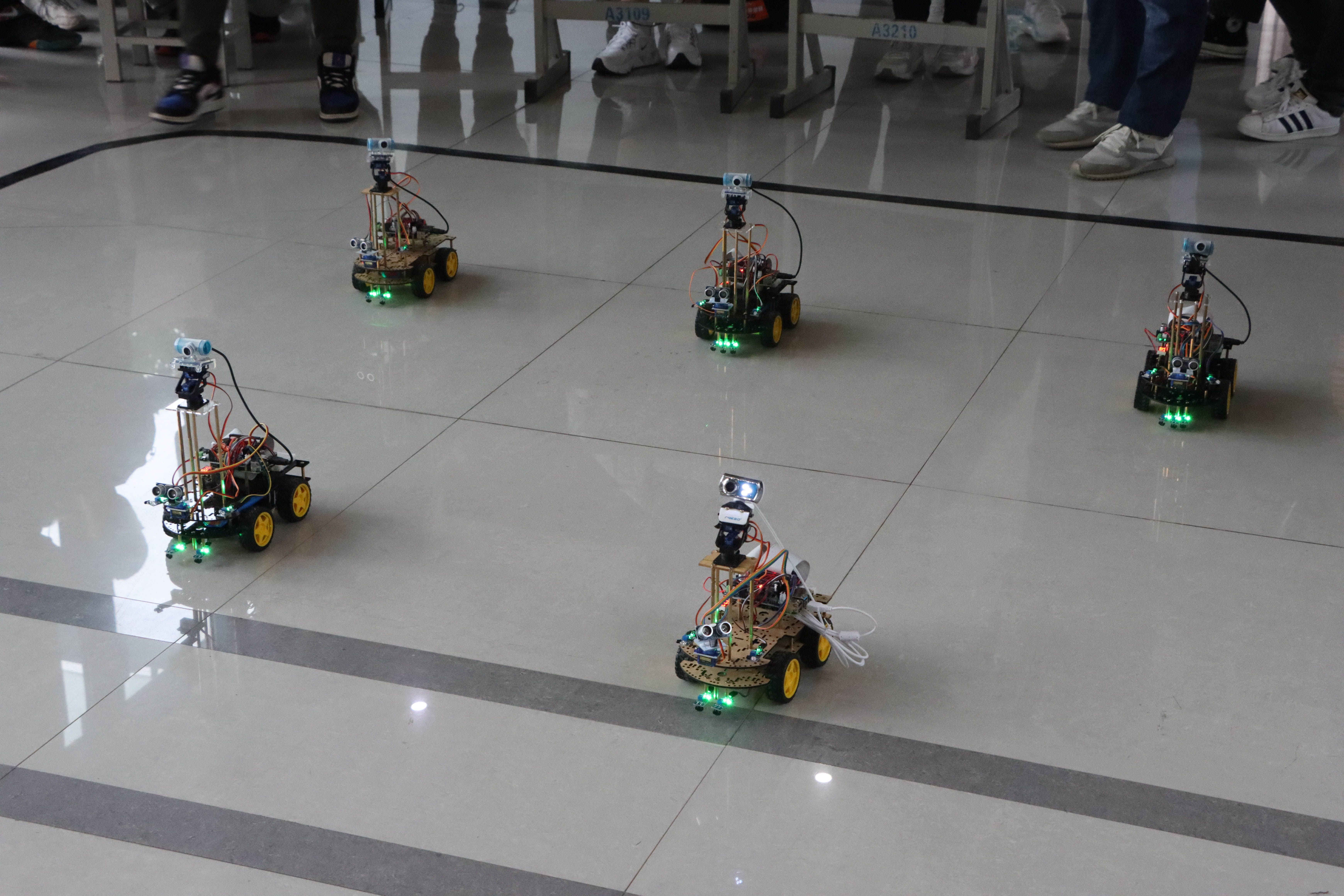 展演伊始,解说员介绍了小车的装配及运作情况。随后,主操作员展示了小车与电脑主控端设备的连接。伴随着主操作员对代码的更改,小车分别完成了基本运动、循迹导航、超声波避障、手机端控制等多种操作,体现出了树莓派智能小车的强大功能,让在场的观众惊叹不已。智能小车展览完毕后,在场观众对树莓派小车的技术问题进行了提问,与展示人员一起对树莓派小车的连接、代码控制等问题进行了细致的讨论,现场气氛热闹非凡。