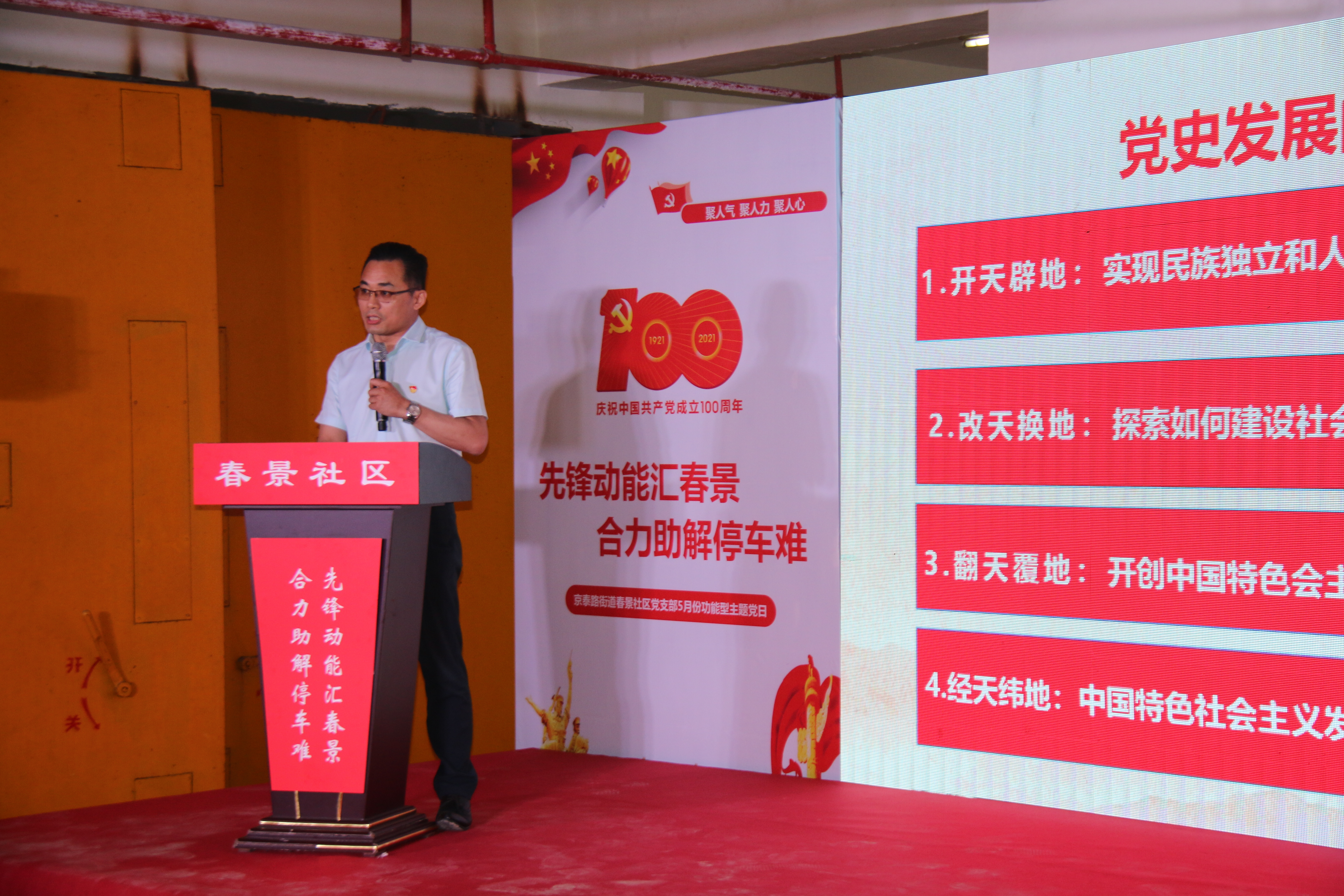 春景社区党支部是公司计科院学工党支部的共建单位。本次主题党日分为红色教育赋能量、集思广益齐出招、先锋动能汇春景三个部分。其中红色教育赋能这一模块由fun88官网体育计科公司党总支书记唐帅老师为大家开讲,他以“百年奋斗路、启航新征程---党的十一届三中全会”为题为大家上了一场引人入胜、催人奋进的党史课。天河家园小区建成之初就已完工的地下人防工程,一直处于闲置状态,同时小区内停车位十分短缺,小区居民对此一直意见很大。春景社区党支部以“学党史、办实事”为契机,组织计科院学工支部党员、积极分子,挨家挨户进行了入户问卷调查,形成调研报告,协调各单位,确定了解决停车难的方案。本次主题党日活动主题明确,广大社区党员、员工党员在接受“红色党史教育”过程中,树立了主动意识,以实际行动积极投入到“居民安全无小事、思想指引快办事”的活动中来。