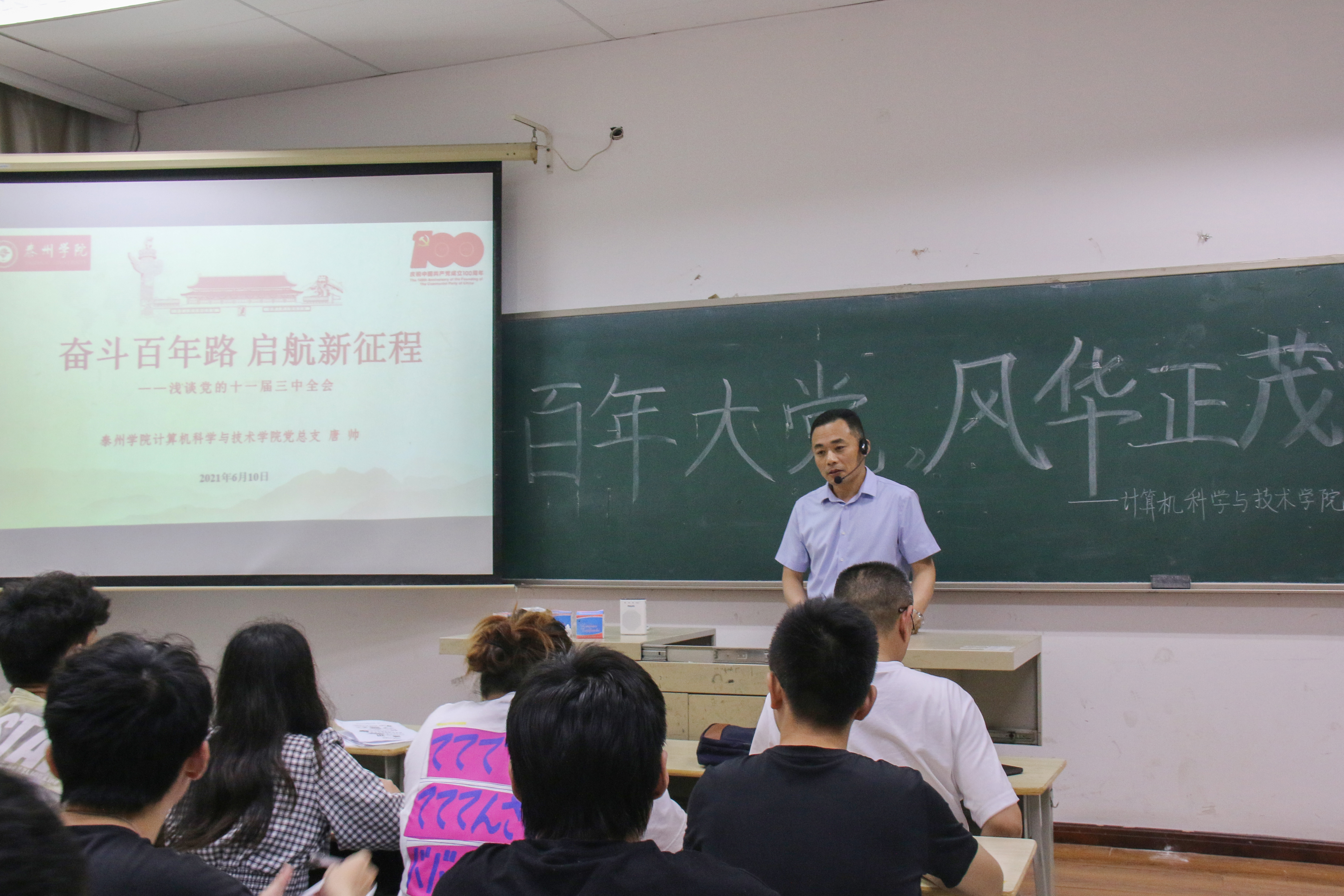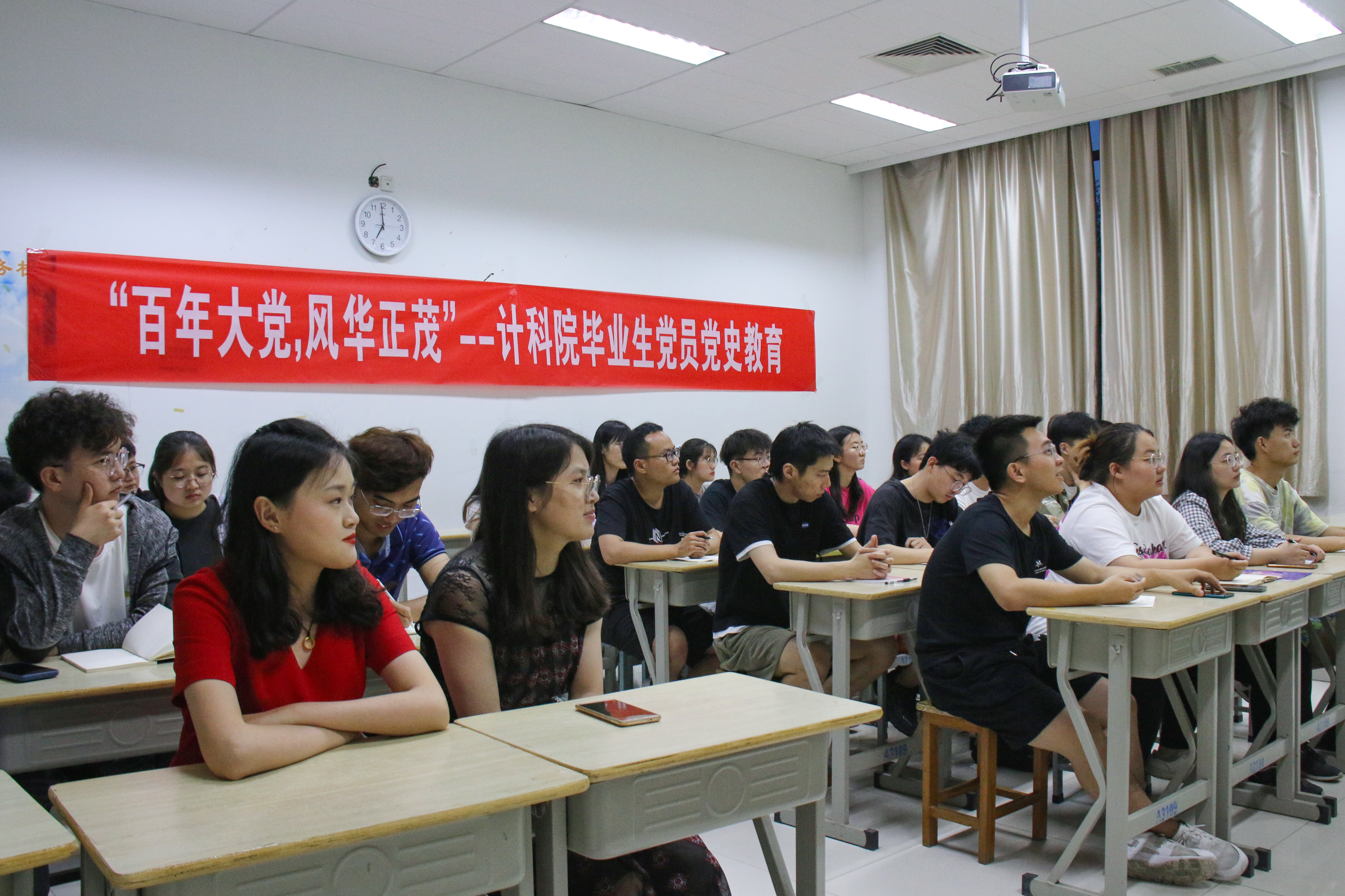 为深入开展党史学习教育,落实毕业生党员教育管理的工作要求,6月10日晚,计算机科学与技术公司学工支部在教学楼3109开展了主题为“百年大党,风华正茂”的专题党课活动。计科院辅导员、2017级全体在公司党员参加了本次活动。