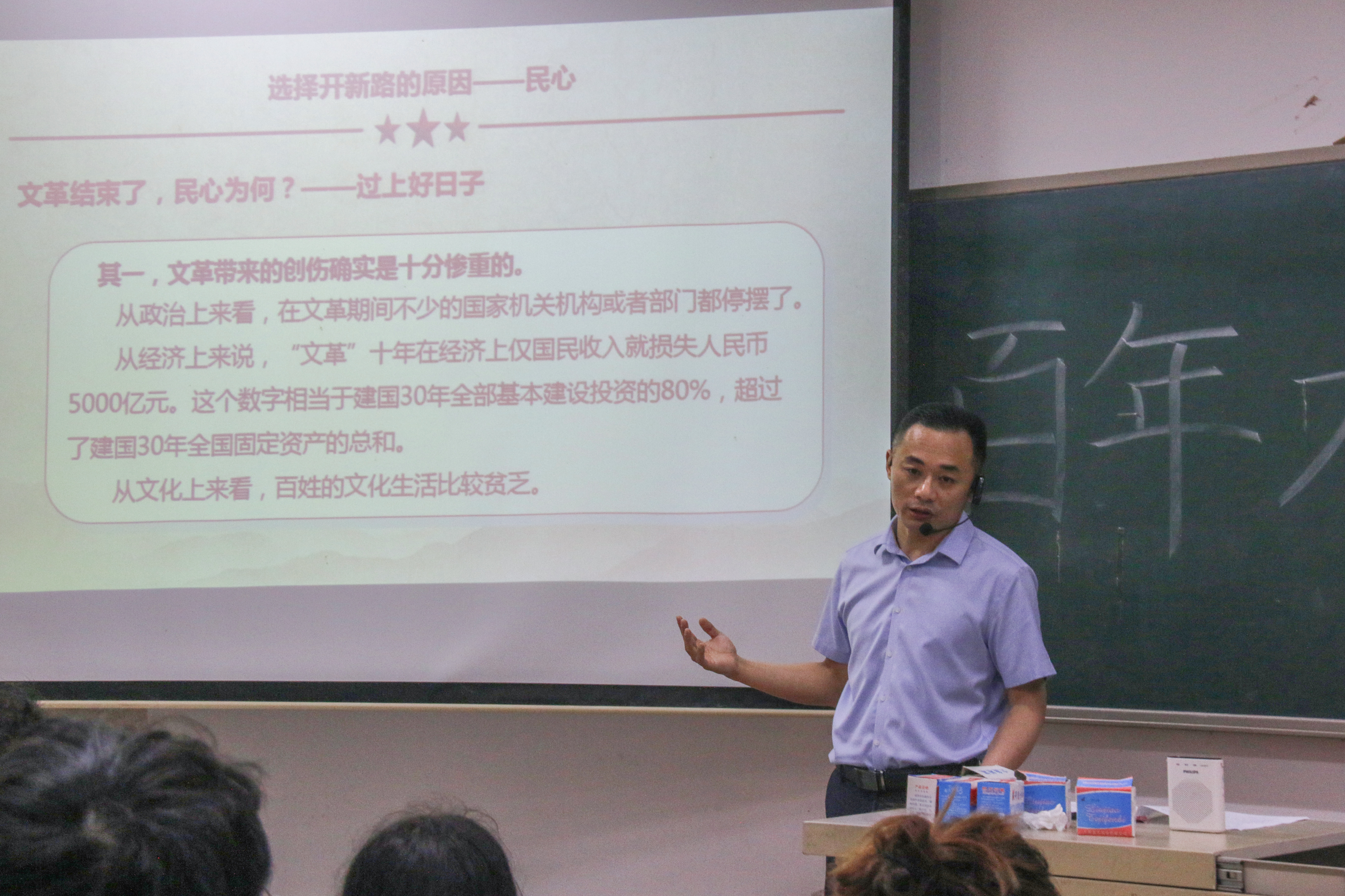 计科公司党总支书记唐帅老师以“百年大党,风华正茂-党的十一届三中全会”为题给2017级毕业生党员上了最后一堂党课。他先从党史发展的四个阶段开篇,让同学们更深入地了解党的光辉历程。随后,唐老师重点讲解了十一届三中全会的主要内容、历史地位等,在讲解时不仅引经据典,还结合时事和亲身感受引导同学们将党史知识更好地入脑入心。最后,他勉励同学们要坚定理想信念,将专业学习和家国情怀结合,更好地担当时代使命。