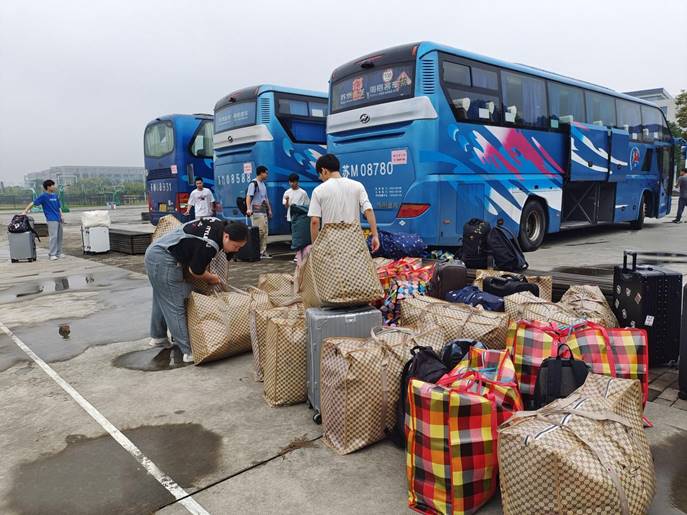 18物联网工程及信管班员工搬运行李,准备出发