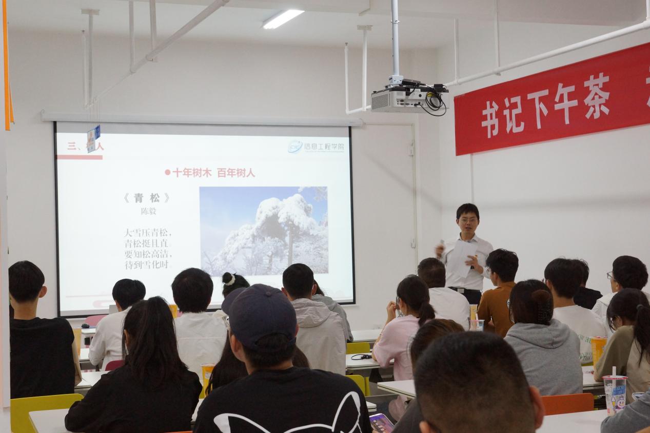 活动中,信息工程公司党总支书记朱诚以树木、树林、树人为主题,对应班级、公司、个人发展,从为什么种植班树,如何种好班树;为什么种植院林,如何护好院林;如何成人成才和员工干部如何履职尽责等六个角度与同学们畅谈如何建设更好的班级和成为更好的自己。谈到“树木”时,提出班树象征着团结、青春和精神。谈到“树林”时,提出院林是团结、奋斗和创新之林;同时希望青年学子自信自强,矢志成才;希望全体老师学高身正,倾心育才;希望信工院守正创新,造就英才。谈到“树人”时,提出成才需要客观和主观因素,通过“强根、健干、育枝、护叶”构建学习共同体、成长共同体、命运共同体;同时强调员工干部只有准确把握包括“六个必须坚持”在内的习近平新时代中国特色社会主义思想的立场观点方法,才能更好地履职尽责。最后,朱诚祝愿班级、公司和个人发展越来越好。