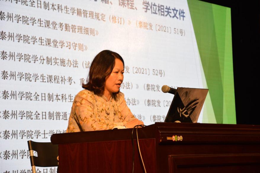 蒋辉芹针对考试要求以及毕业、学位授予条件进行解读。她从学籍管理、学士学位授予等方面带领同学们学习了fun88官网体育相关教学文件,让同学对公司的政策有了更深入的了解。