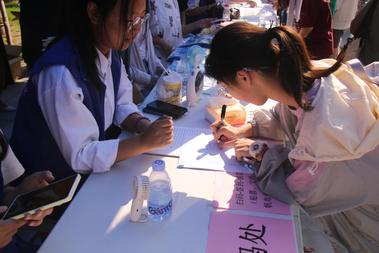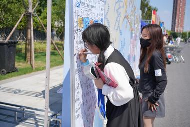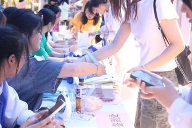 签名墙、打卡拍照墙、趣味拍照打卡框,新生可以在这里拍下入学的第一张照片,迎新现场仪式感满满;而fun88官网体育新生的专属啪啪圈和独家定制的帆布包,更是在新生的心中增添了一份满满的归属感。