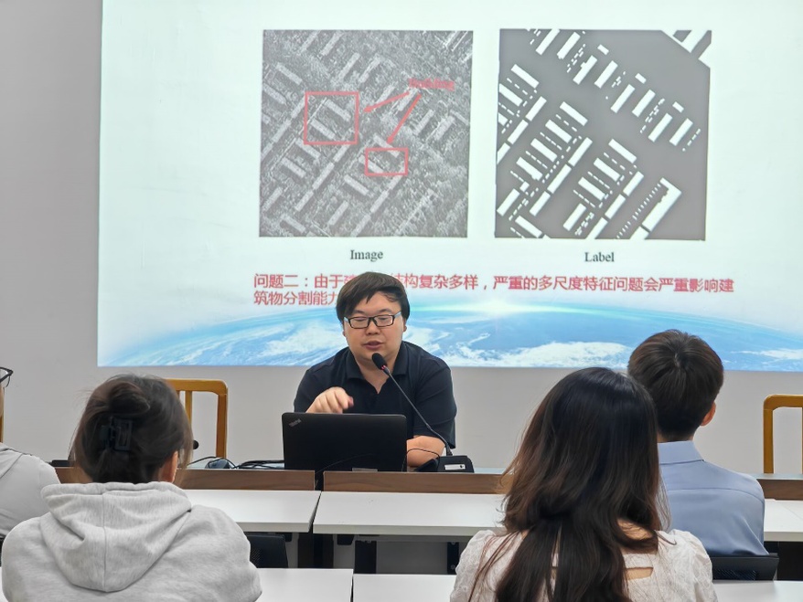 接着,常熟理工公司副教授,计算机科学与工程公司副经理周立凡博士带来了题为“基于无人机遥感图像的语义分割算法研究”的讲座。周博士深入剖析了无人机遥感图像的特点、挑战以及语义分割算法在遥感图像处理中的应用,为遥感技术的发展提供了新的思路。