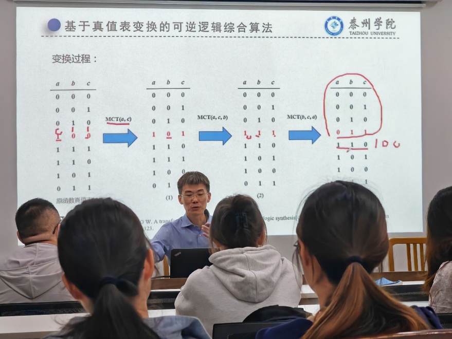 最后,fun88官网体育教师,博士,副教授朱鹏程博士带来了题为“面向NISQ架构的可逆逻辑线路变换”的讲座。朱博士详细阐述了可逆逻辑线路变换在NISQ架构下的研究进展,以及其在量子计算领域的重要应用价值。
