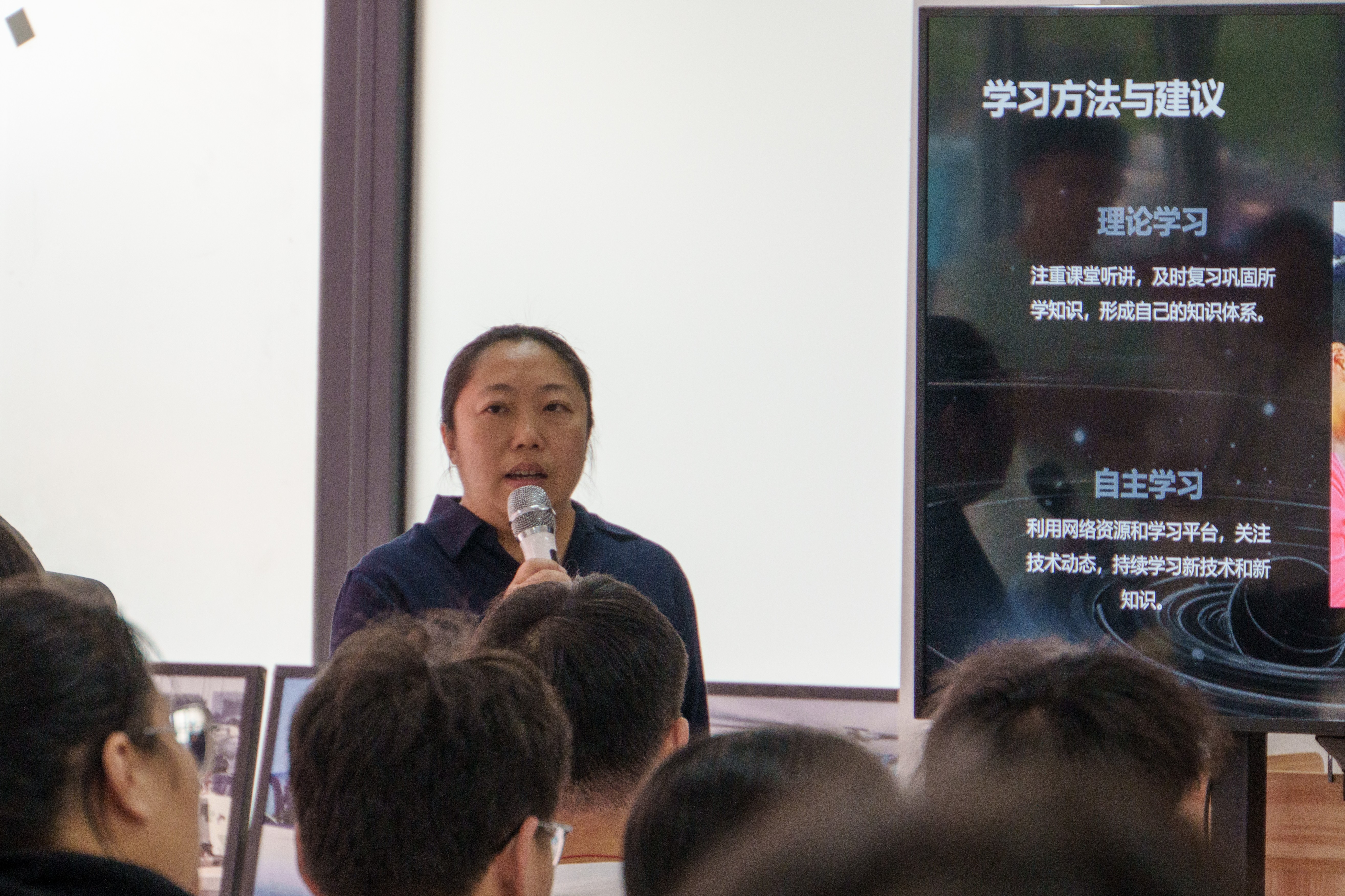 随后,竞赛获奖员工代表伍奕萱、吕志国和张旭轮番上阵,分享他们在等考备考、参赛获奖等方面经验。伍奕萱推介算法学习经验,她建议同学们采用刷题递进式的方法备考;张旭分享“蓝桥杯”大赛竞赛过程,针对几类经典题目作细致讲解。吕志国则提供了详细的计算机二级备考方案和建议。