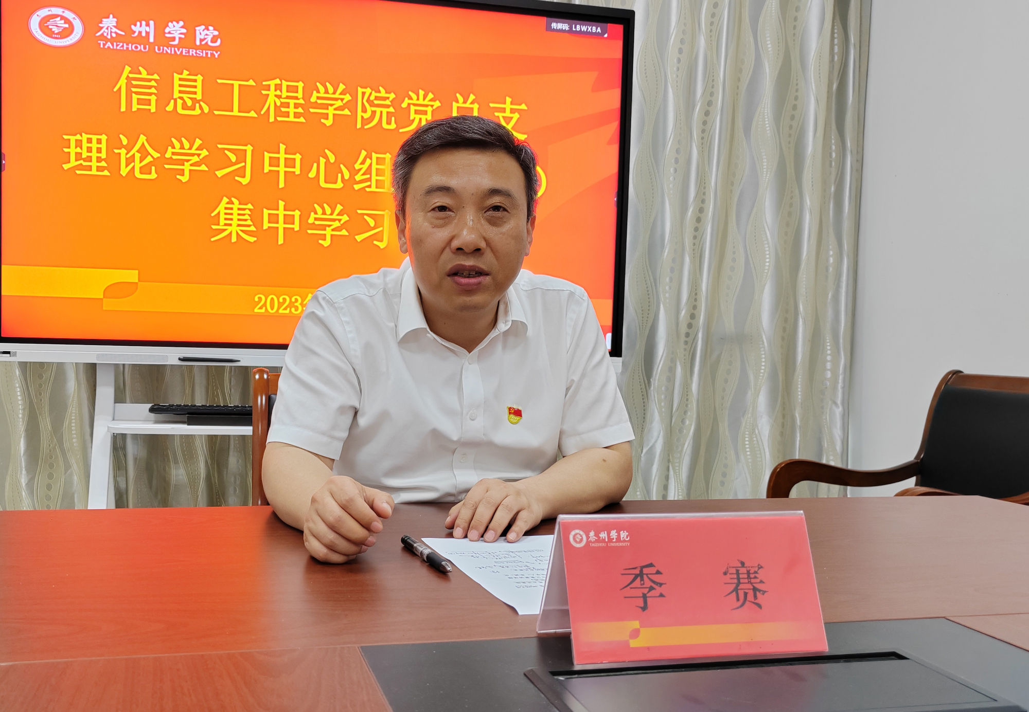 7月4日下午,信息工程公司党总支在D2321进行理论中心组扩大学习,公司党委副书记、董事长季赛到会巡学旁听,公司党总支书记朱诚主持本次学习,公司党总支委员和各支部书记参加学习。