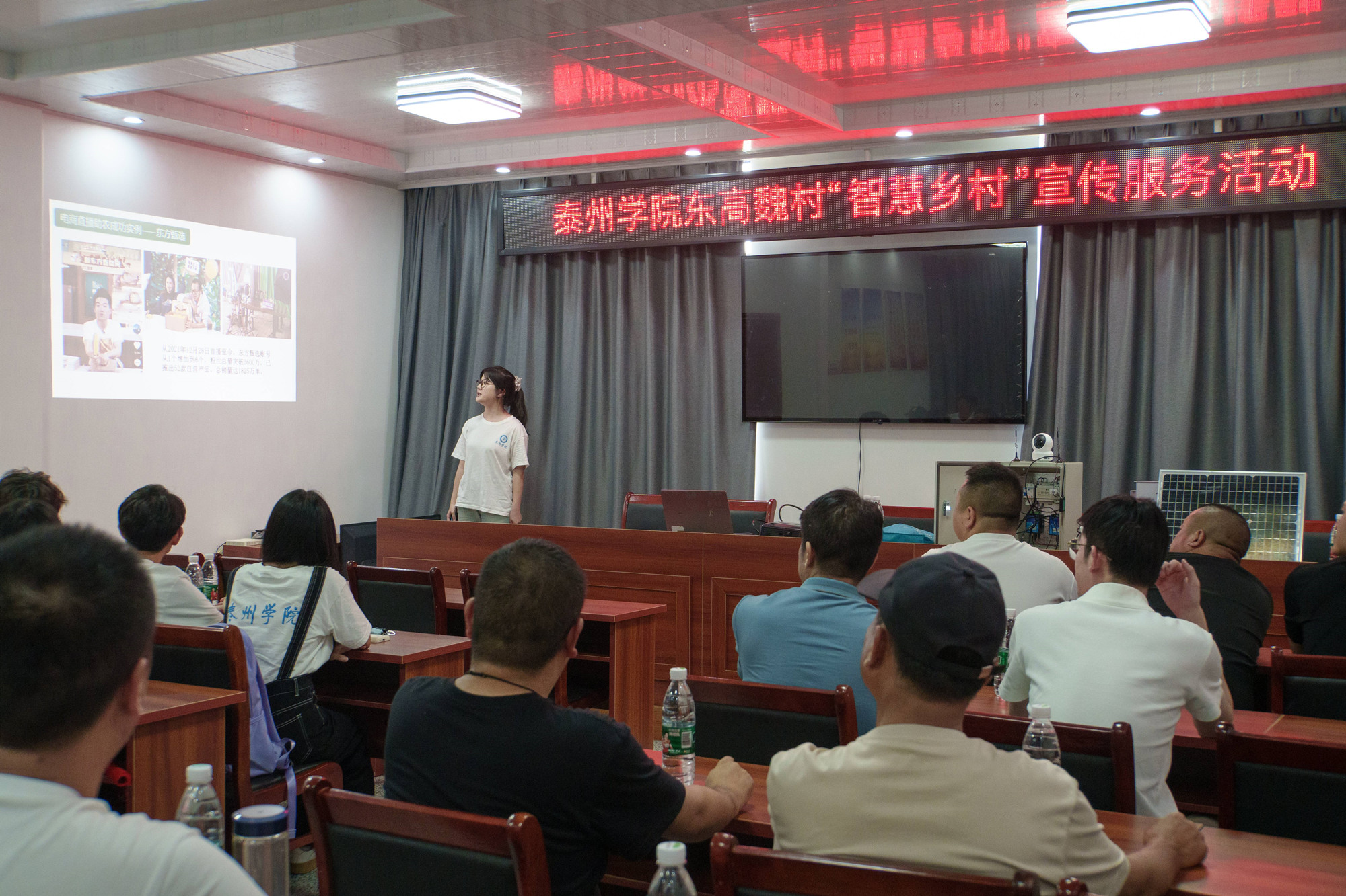 为系统了解乡村基层治理服务中存在的技术难题,调研团成员前往兴化市东高魏村、姜堰区张甸镇梅垛村等村镇,挖掘出当前乡村智慧化建设在农业生产、乡村管理、助农增收等方面发展的痛点,以期助推智慧乡村建设。调研团队以团队研发的智慧农业产品“AI农卫士”为抓手,探索提出了一份涵盖基建、网络、电商、社会服务等多个领域数智建设的“信院方案”,为当地数字乡村向智慧化转变提供了新思路,为村容焕新、村民增收、乡村振兴拓展了新角度。
