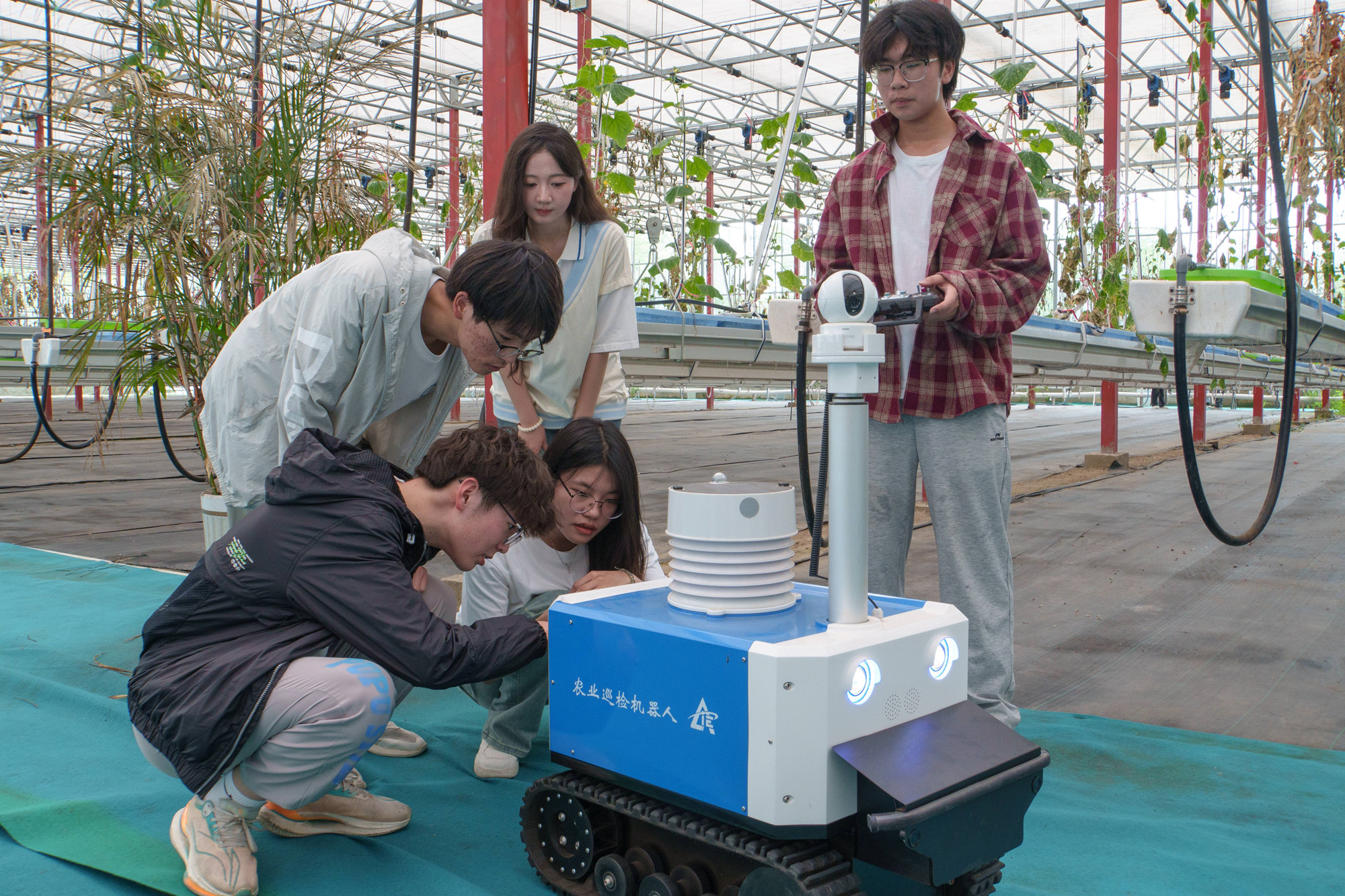实践团队先后前往泰州现代园艺科技产业示范园、泰州滨江现代农业科技产业园等地观摩、调研,亲身投入农业劳作体验多种先进农业科技设备与智慧农作管理云平台。团队成员们还在镇江市丹徒区世业镇先锋村四季草莓园与工作人员就草莓等作物种植进行交流,调研中发现草莓、葡萄等作物存在灰霉病等问题,对其叶片发育、挂果有一定影响。成员们扎根实验室,发挥所学专业知识,集成人工智能技术,成功研发集环境监控、病虫害识别和智能问药功能于一体的智慧化产品——“AI农卫士”。在对比实验中显示,运用该成果将助力作物每亩增收约1300斤,这一应用成果为团队在智慧农业领域的探索增添了有力注脚。