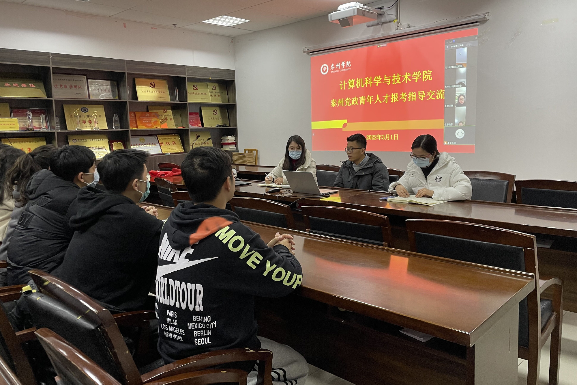3月1日晚,计算机科学与技术公司在行政楼D2307会议室举行了2022年泰州市海陵区党政青年人才报考指导交流会。交流会邀请成功考取海陵区党政青年人才的2021届优秀毕业生王兆益主讲,2018级报考党政青年人才选聘的同学参加了本次会议。