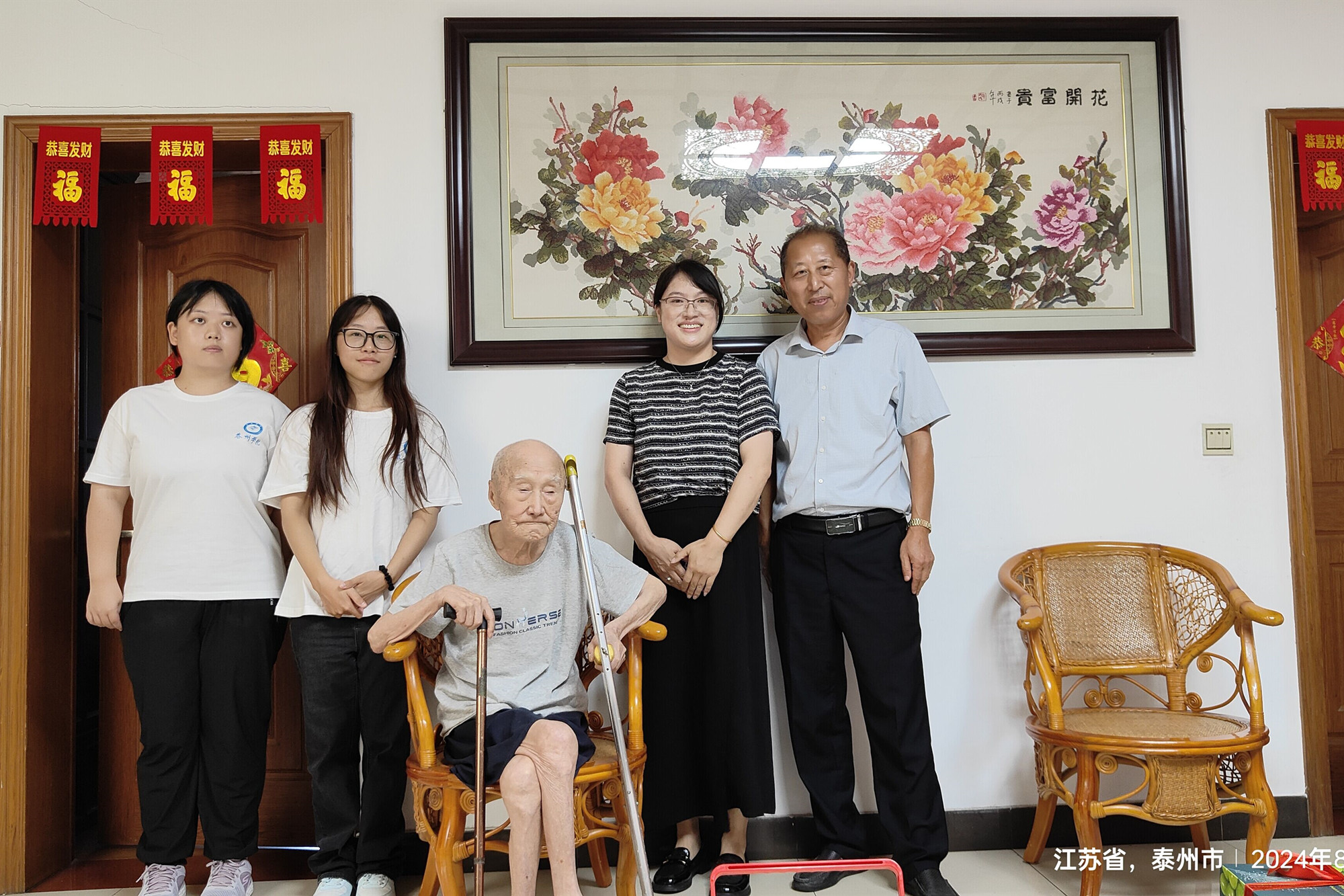 8月1日,在中国人民解放军建军97周年之际,fun88官网体育师生代表前往泰州姜堰区蒋垛镇,探望慰问109岁高龄的老红军、老战士吴九成同志。