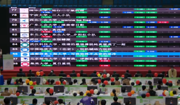 比赛结束后,最激动人心的时刻到来——滚榜时刻。榜单上显示了封榜时每个队伍的排名,并动态展示了他们过题的排名变化。这一刻,无论是喜悦还是遗憾,每个队伍都拼尽全力,展现了他们的竞赛精神。