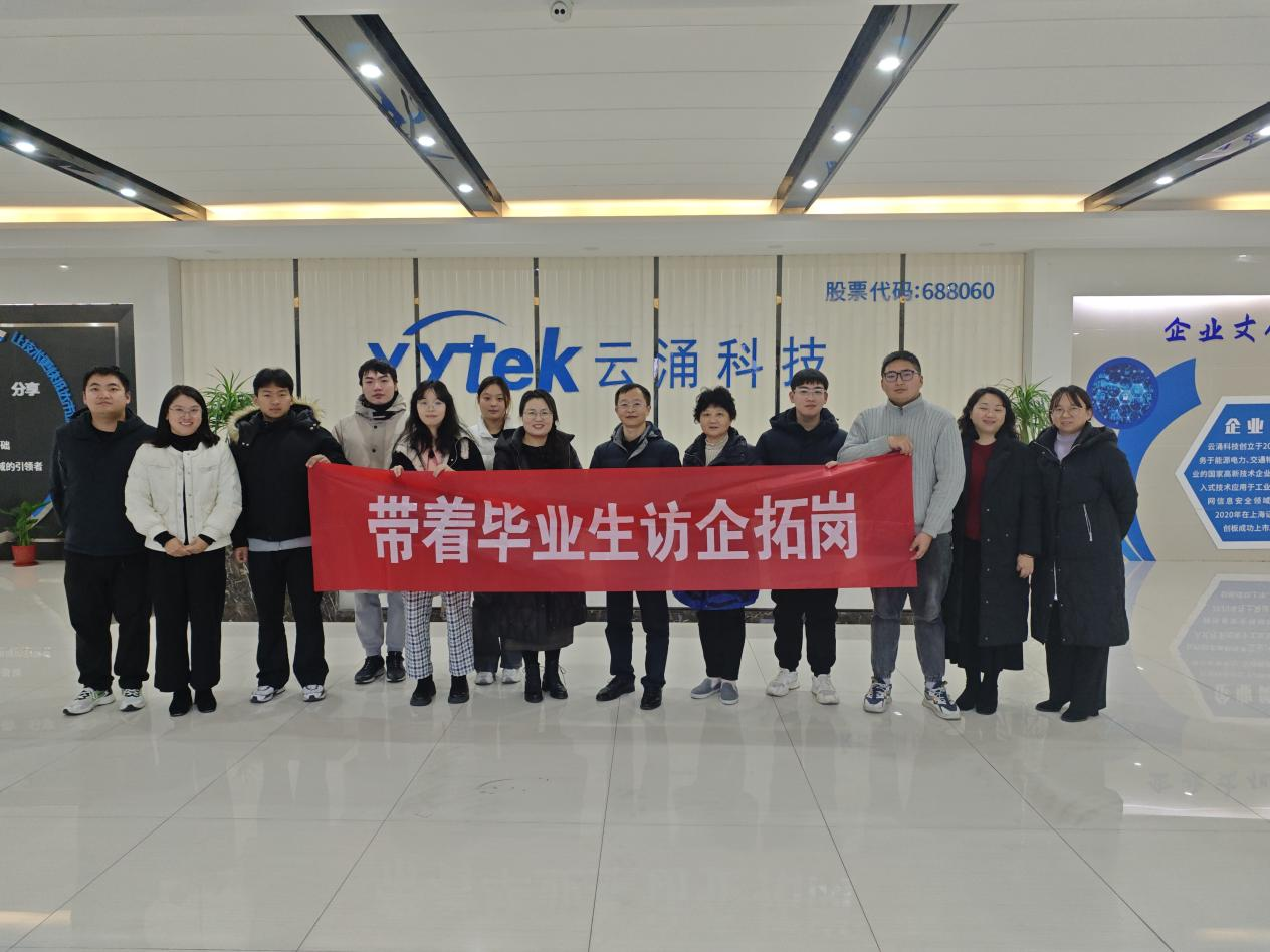 为开拓就业岗位,深化校企合作,1月3日,信息工程公司党总支书记杨智红带着部分毕业生赴江苏云涌电子科技股份有限公司考察调研。