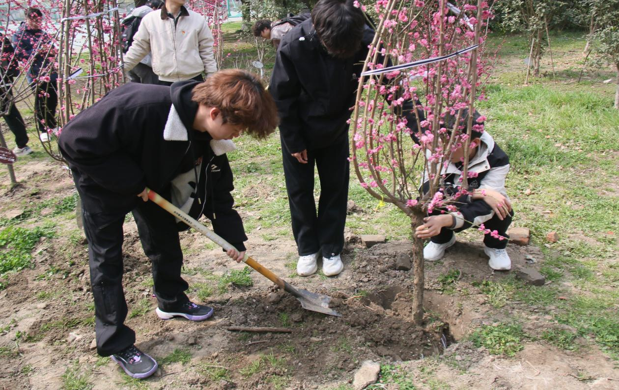 活动最后,全体师生移步植树区,以班级为单位栽种下属于24级的班树。一棵棵红梅在春风中昂然挺立,焕发出勃勃生机,为大地添上一抹亮色