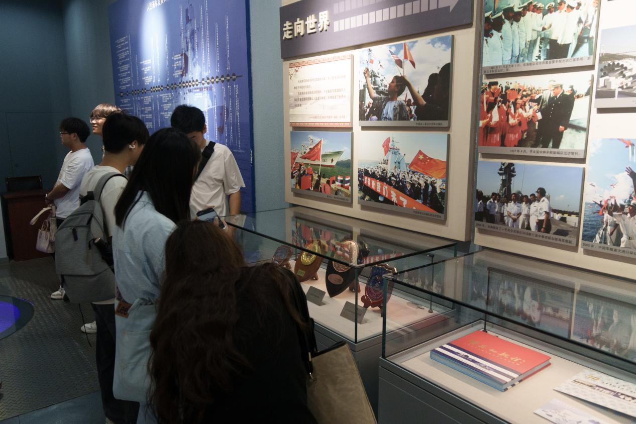 走进纪念馆,展区内陈列的大量珍贵历史实物、文献资料和影像图片,系统展现了人民海军从白马庙诞生到发展壮大的辉煌历程。员工在实物装备、历史照片以及馆内陈列的舰载武器等展品前驻足,既深入了解了人民海军艰苦创业的峥嵘岁月,也直观感受到国防现代化建设的卓越成就与现代化海军的硬核实力。“看到先辈们仅凭简陋装备守护海疆的事迹,再对照如今的航母编队,我深切感受到和平与强大的来之不易。”2025级计算机科学与技术1班孔令松同学在参观完纪念馆后动容地说。