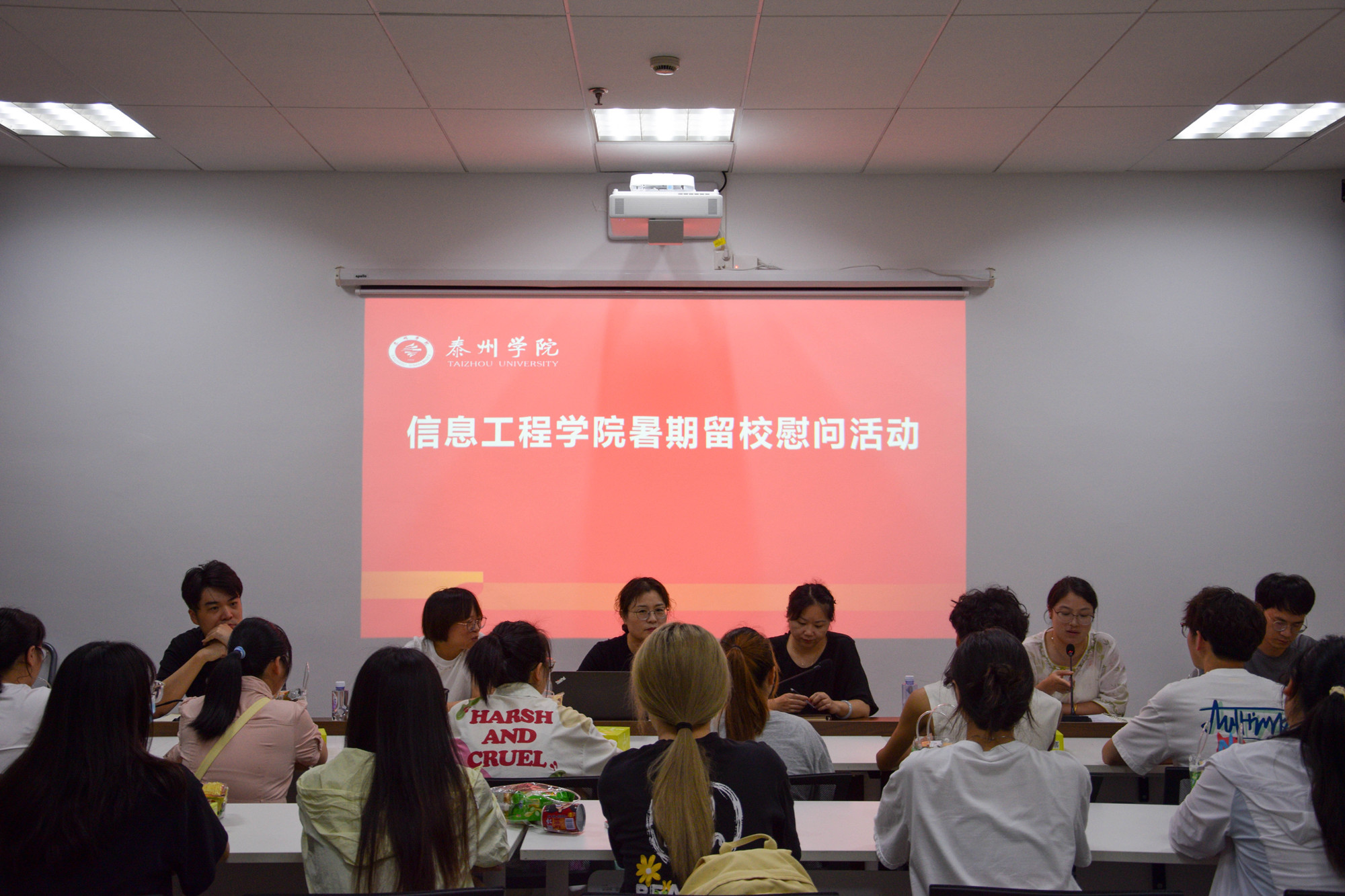 徐艳领学了中共中央相关文件,让同学们更深入地理解了国家关于教育、科技、人才方面的政策。在互动交流环节中,员工们积极发言,分享了他们在暑期的学习经历和面临的挑战。党支部成员更加直观地了解到员工们的需求,并对遇到的困难和需求提出解决办法与指导意见。在慰问环节,徐姗姗提醒同学们要增强安全意识,注意人身、财产以及消防安全,相互关心,共同成长。