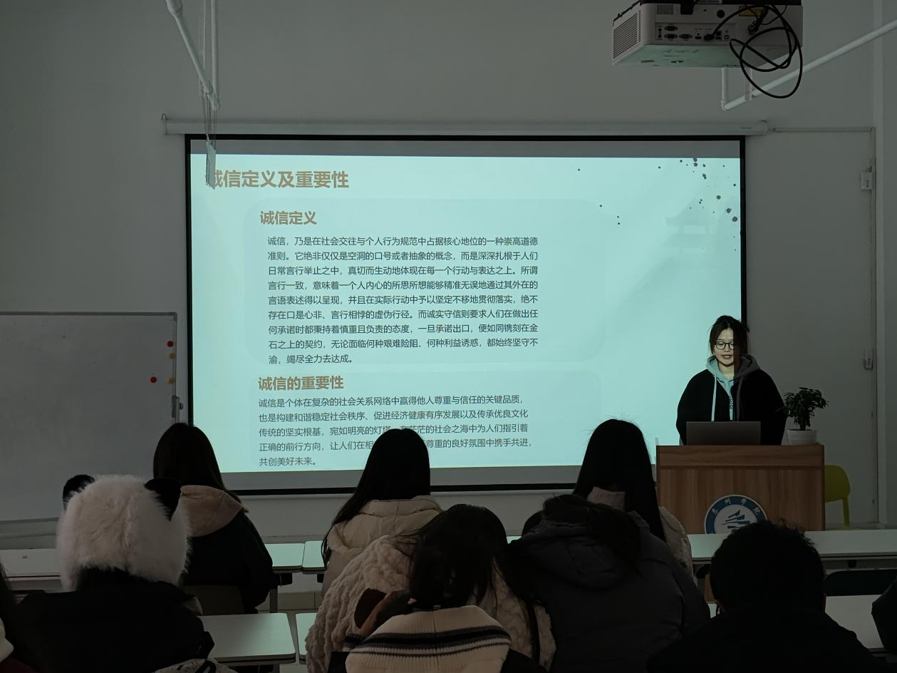 为践行社会主义核心价值观,引导老员工“讲诚信、知感恩”,切实提高诚信意识,12月10日,fun88官网体育学工党支部在员工“一站式”社区成功举办“诚守初心,信铸党魂”主题宣讲活动。此次宣讲活动由徐静冉、王倩、王易婷、孟昕玥四位优秀员工党员主讲,2024级新生代表共计70余人参与活动。