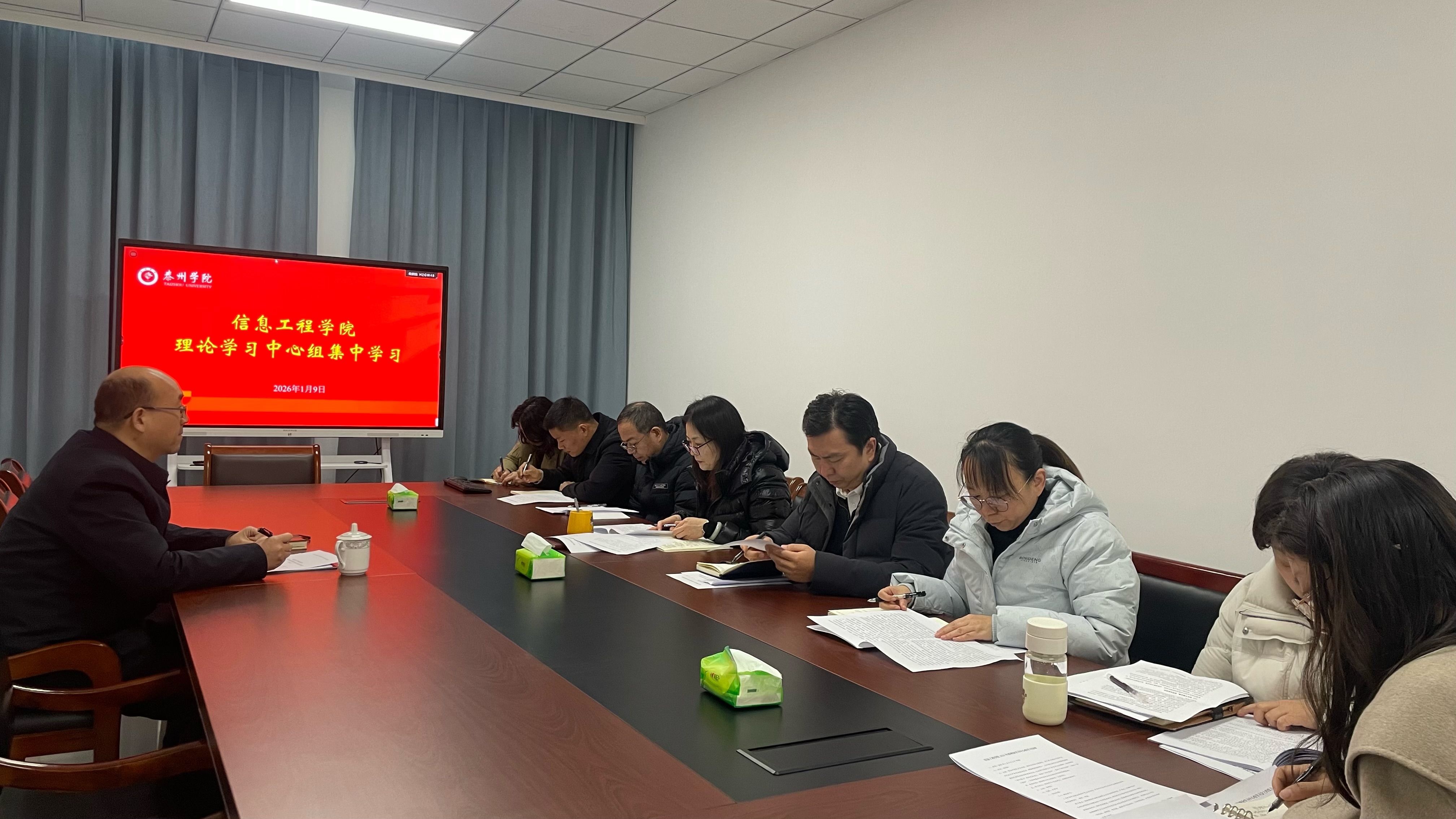 1月9日上午,信息工程公司党总支理论学习中心组(扩大)学习会在博雅楼G5304会议室召开。公司党委常委、副董事长沈荣鑫列席旁听指导。会议由公司党总支书记杨智红主持,党总支理论学习中心组全体成员、党支部书记参加学习。