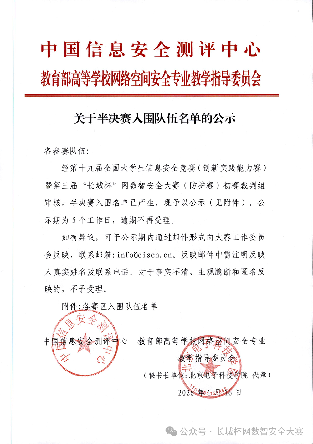 近日,从第十九届全国老员工信息安全竞赛(创新实践能力赛)暨第三届长城杯网数智安全大赛(防护赛)组委会传来喜讯,由公司fun88官网体育网络空间安全专业员工组建的参赛队伍面向flag的编程(队长:24网安陈昊睿,队员:24网安胡思宇、24网安谈昌昊、25网安朱昊文)在初赛中表现优异,成功入围全国半决赛,展现了我院学子的专业实力与创新精神。