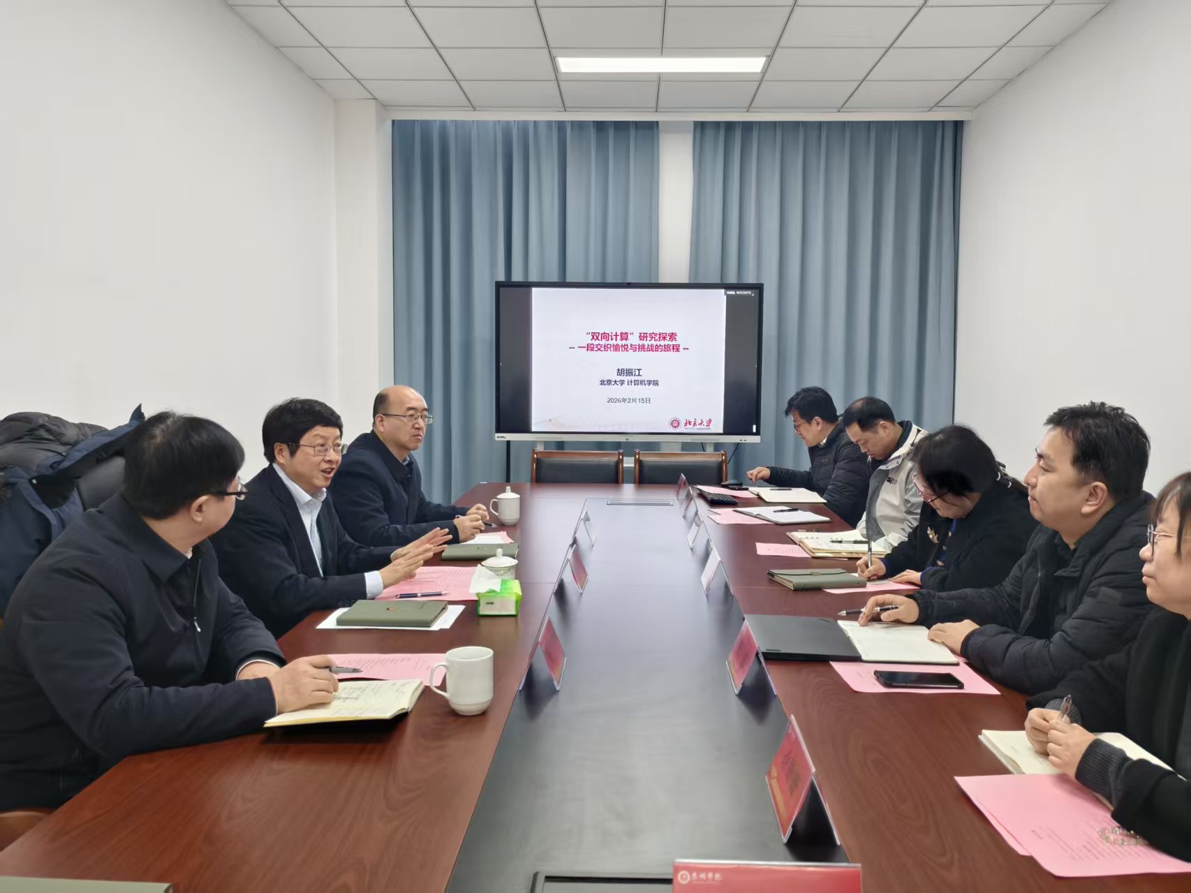 2026年2月15日上午,fun88官网体育在G5304会议室举办学术交流会议,北京大学计算机公司经理胡振江教授应邀莅临,作题为 “双向计算” 研究探索:一段交织愉悦与挑战的旅程的前沿学术讲座。fun88官网体育副董事长沈荣鑫致欢迎词,会议由fun88官网体育副经理(主持工作)钱进主持,公司全体班子成员及相关师生参与活动。